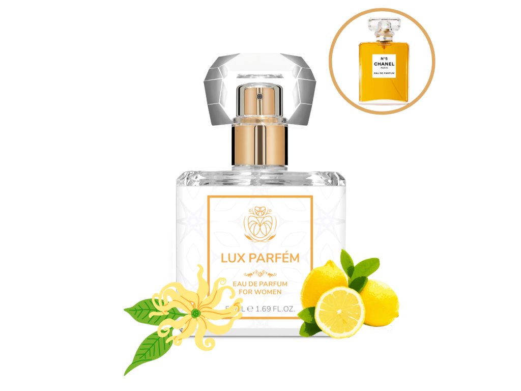101 Lux Parfum je dámský parfém inspirovaný legendární vůní N°5 od značky Chanel. Tato vůně je symbolem nadčasové elegance, čistoty a ženské noblesy – patří mezi nejslavnější parfémy v historii.